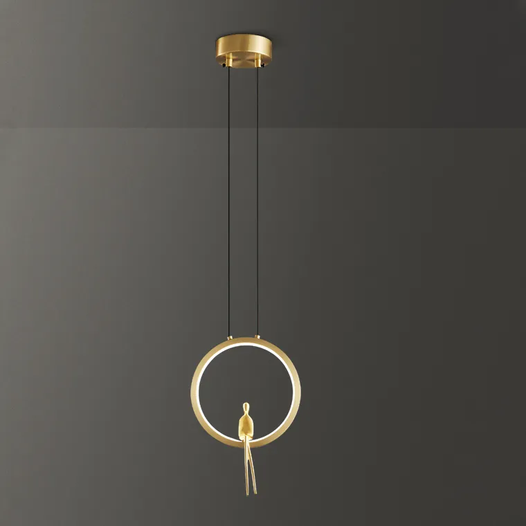 Серия подвесных светодиодных светильников с человеческой фигуркой на светящемся кольце из латуни