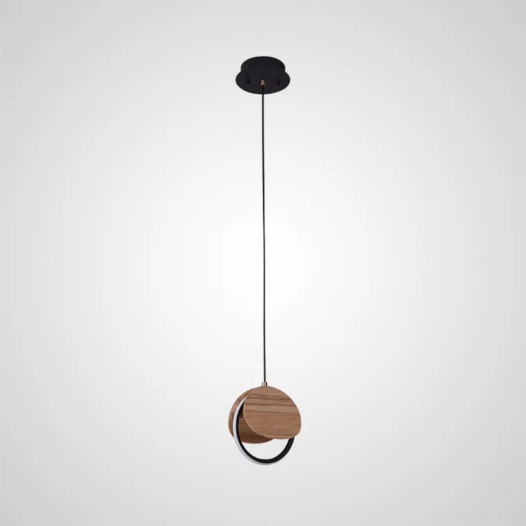 Подвесной светильник с круглыми деревянными накладками на светодиодном кольце
