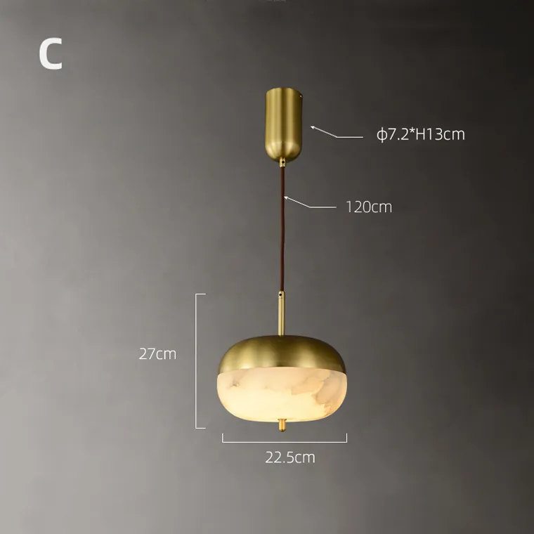 Серия подвесных светильников с округлыми плафонами из белого мрамора в латунных держателях