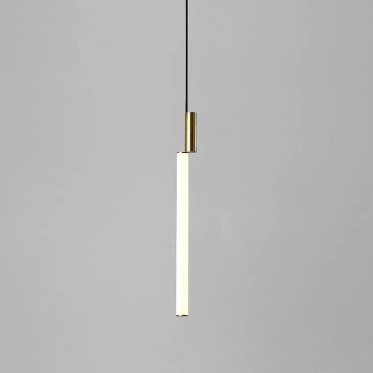Серия подвесных светильников в виде светодиодных стержней на цилиндрическом основании из латуни