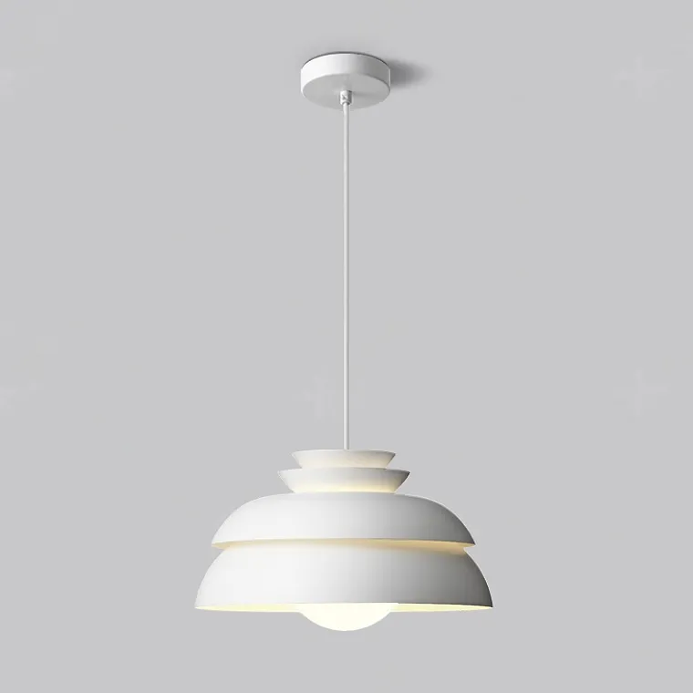 Подвесной светильник с шарообразным плафоном под белым сегментированным абажуром купольной формы