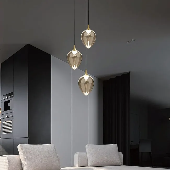 Серия подвесных светильников из черненой латуни с шарообразным мраморным плафоном