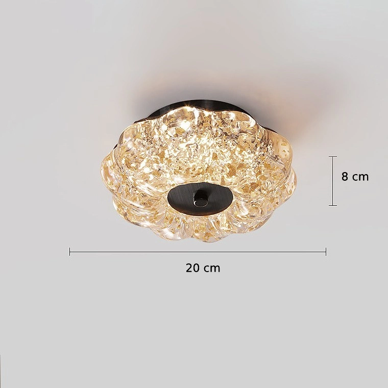 Потолочный светильник круглым фактурным плафоном, напоминающим лепестки цветка с эффектом льда