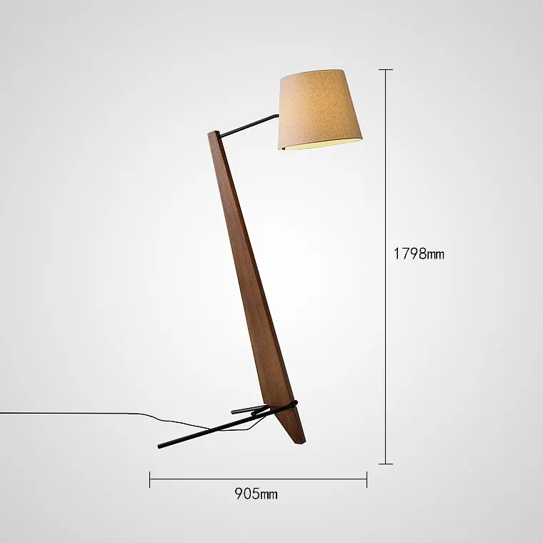 Серия торшеров с наклонным корпусом из высококачественной древесины и текстильным плафоном