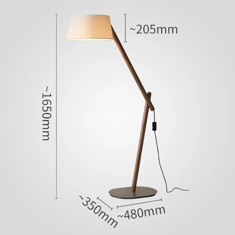 Серия торшеров с регулировкой угла наклона корпуса из высококачественной древесины и текстильным плафоном