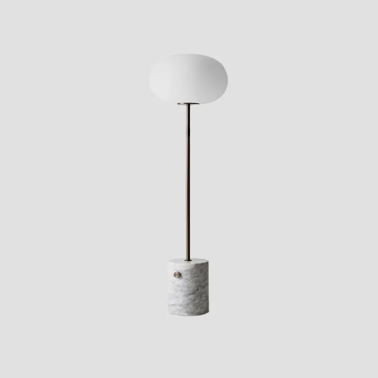 Торшер в скандинавском стиле на мраморном основании с круглым плафоном из стекла