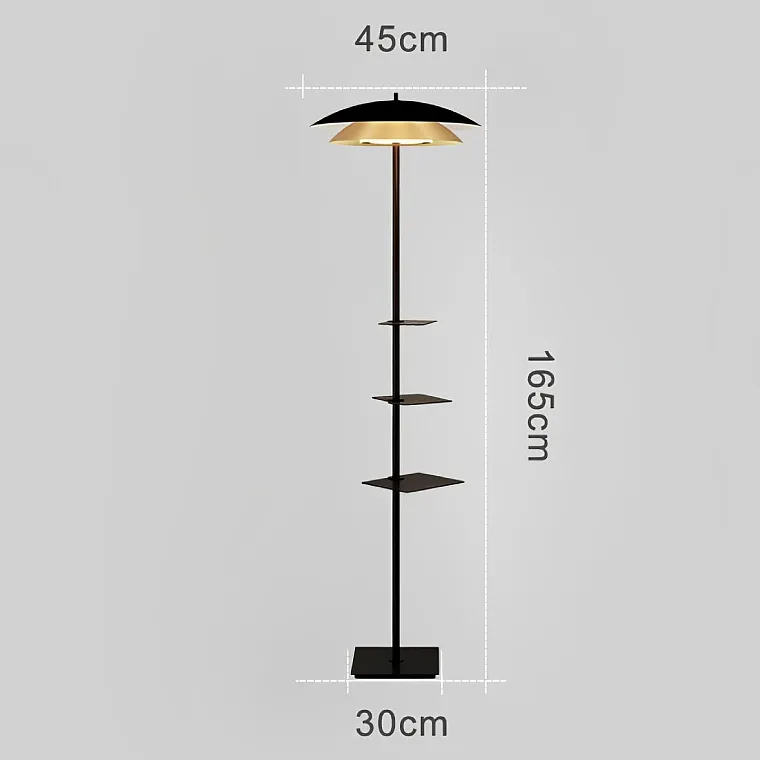 Светодиодный торшер с двойным купольным плафоном, полочками и сенсорным переключением цветовой температуры