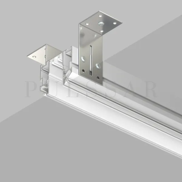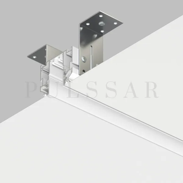 TR3045-AL – Комплект монтажных уголков для монтажа профиля к черновому потолку. Позволяет легко регулировать высоту установки профиля. В комплекте: 2 уголка, крепеж.