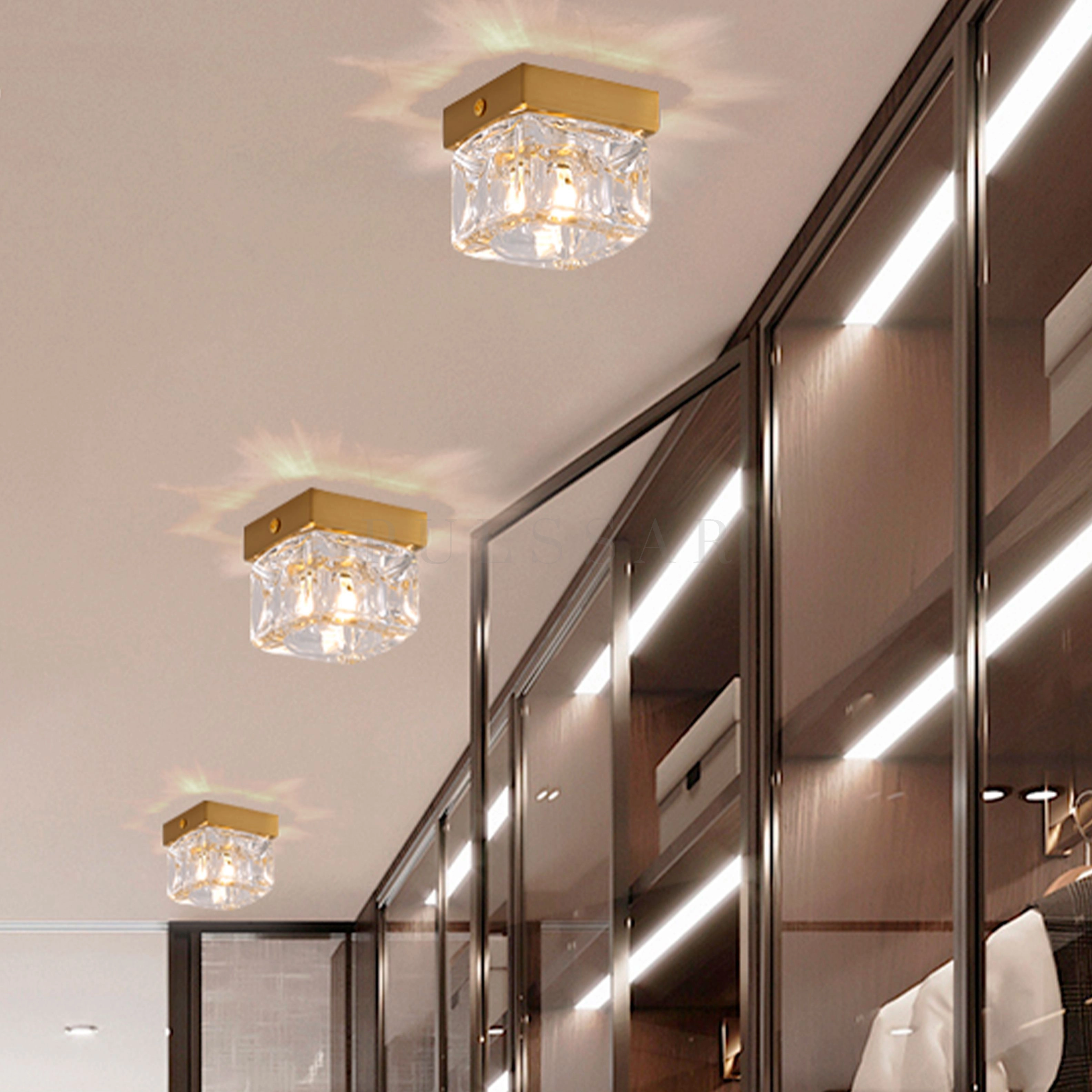 - Коридор. В нём можно установить накладные небольшие светильники или точечные. Оптимальное размещение – по длине коридора.