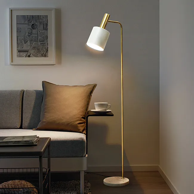 - Торшеры. Устанавливаются на полу в разных зонах: около кресла или дивана, рядом со спальным местом, около туалетного столика.