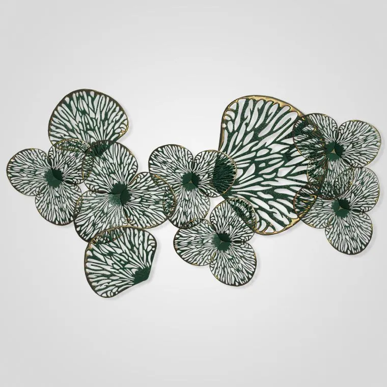 Элегантный настенный декор в виде абстрактной композиции из металлических дисков различных размеров с ажурным узором
