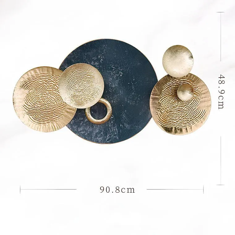 Настенный декор из металла в виде абстрактной композиции из кругов с текстурированной поверхностью
