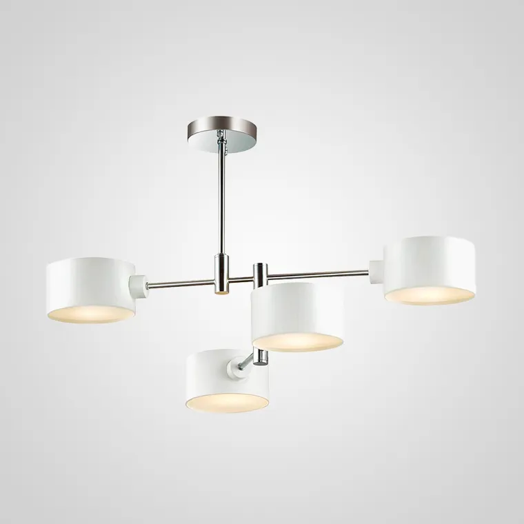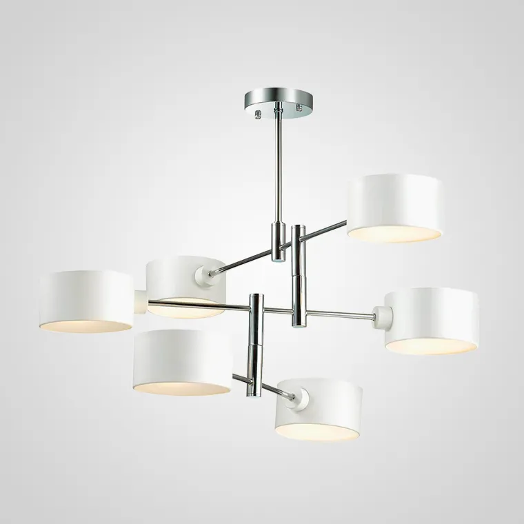 Люстра мне показалась интересной. Из всех выбрала её и не прогадала. В современный интерьер вписалась идеально просто! Плафоны тут в виде цилиндров, ничего лишнего. Белого цвета, по фактуре жемчуг напоминают, что мне тоже понравилось. Есть поворотный механизм, так что лучами можно управлять. Светит люстра комфортно. В общем, всё в этой модели хорошо.
