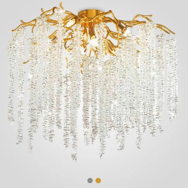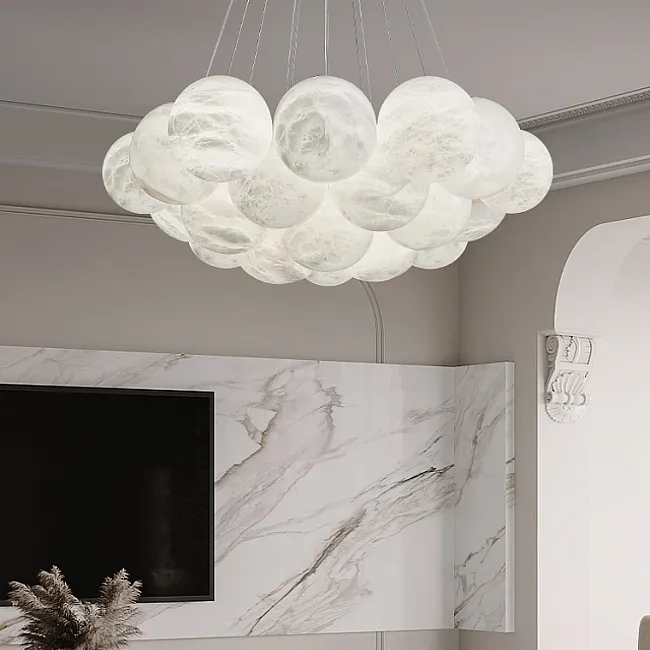 В каталоге устройства из различных материалов – из стекла, хрусталя, керамики, акрила, дерева, латуни и других металлов, камня, текстиля. Выбор оттенков тоже впечатляет и способен удовлетворить любые вкусы. Доступны люстры пастельных, благородных тёмных, металлических цветов, например, бежевого, голубого, мраморного, бежевого, золотого, зелёного, коньячного, песочного, дымчато-серого, розового, синего, чёрного, янтарного, шампань.