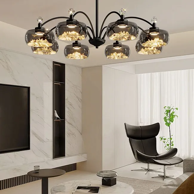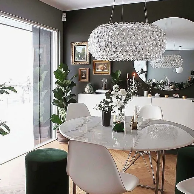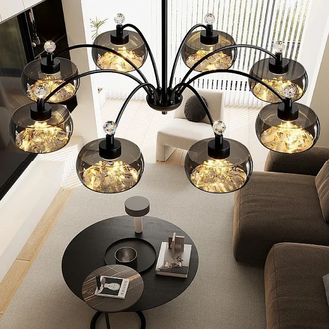 Люстры классические для столовой и гостиной, как и устройства для других комнат, благодаря сдержанности и элегантности прекрасно вписываются не только в классику, но и в другие интерьерные стили, такие как модерн, минимализм, современный, лофт, сканди, ретро, арт-деко. Нужно лишь подобрать подходящую модель, которая встроится в концепцию по форме, материалу, фактуре.