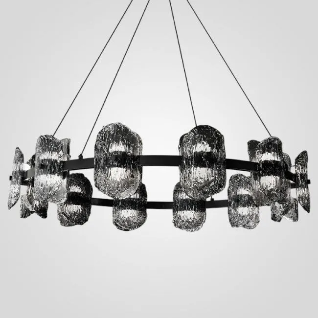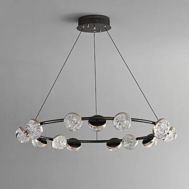 Мы предлагаем люстры из различных материалов, например, металлов (латуни, нержавеющей стали), акрила, полиуретана и других полимеров, дерева, стекла, текстиля, хрусталя. Вариантов исполнения плафонов, каркасов и декоративных элементов очень много: одноярусные или многоуровневые кольца, кисточки, подвески, пластины, перья, сферы, а также расположенные по кругу кубы, шары, полусферы и другие геометрические или абстрактные фигуры.