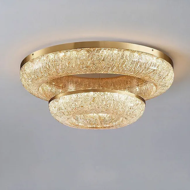 В ассортименте круглые люстры на потолок разных видов. Это подвесные оригинальные приборы на подвесах в виде цепей, штанг, шнуров. Они хорошо подходят для просторных, высоких комнат. Если потолки низкие, лучше остановиться на потолочном светильнике, монтируемом прямо на основании и занимающем немного места.