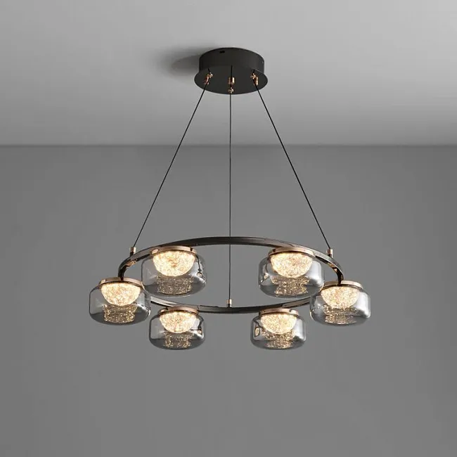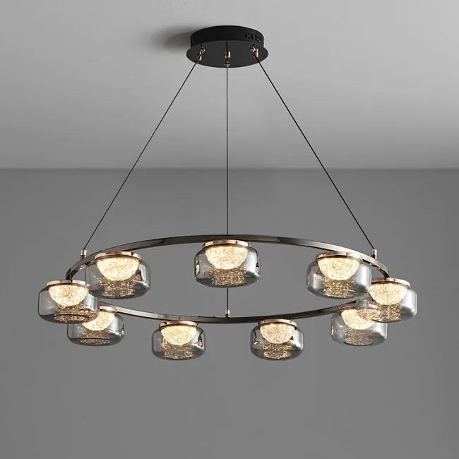 В каталоге люстры с круглыми плафонами в виде куполов, тарелок, сфер и полусфер, а также кольцевые модели, светильники с расположенными радиально плафонами на каркасе или на рожках. В качестве источников света используются разные лампочки, в том числе экономичные и энергоэффективные светодиодные. Доступны модели со стандартными востребованными цоколями для установки любого вида ламп.