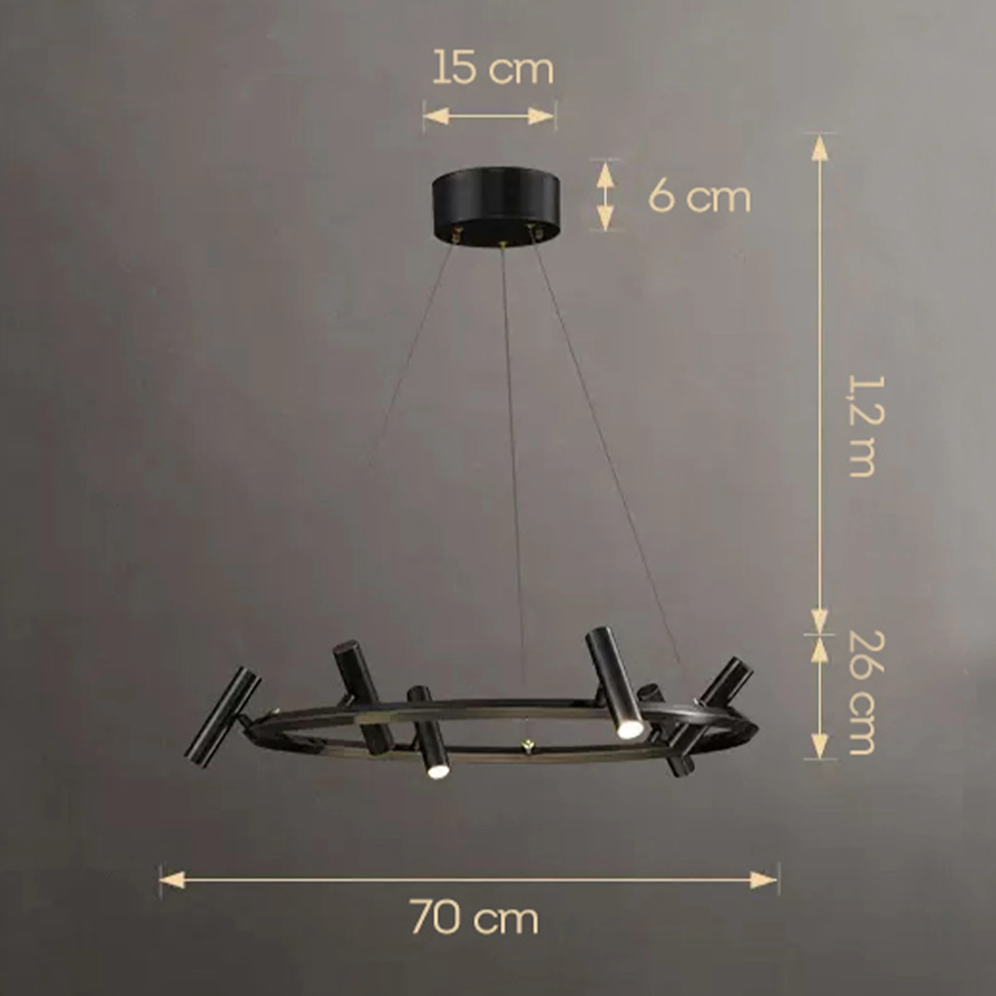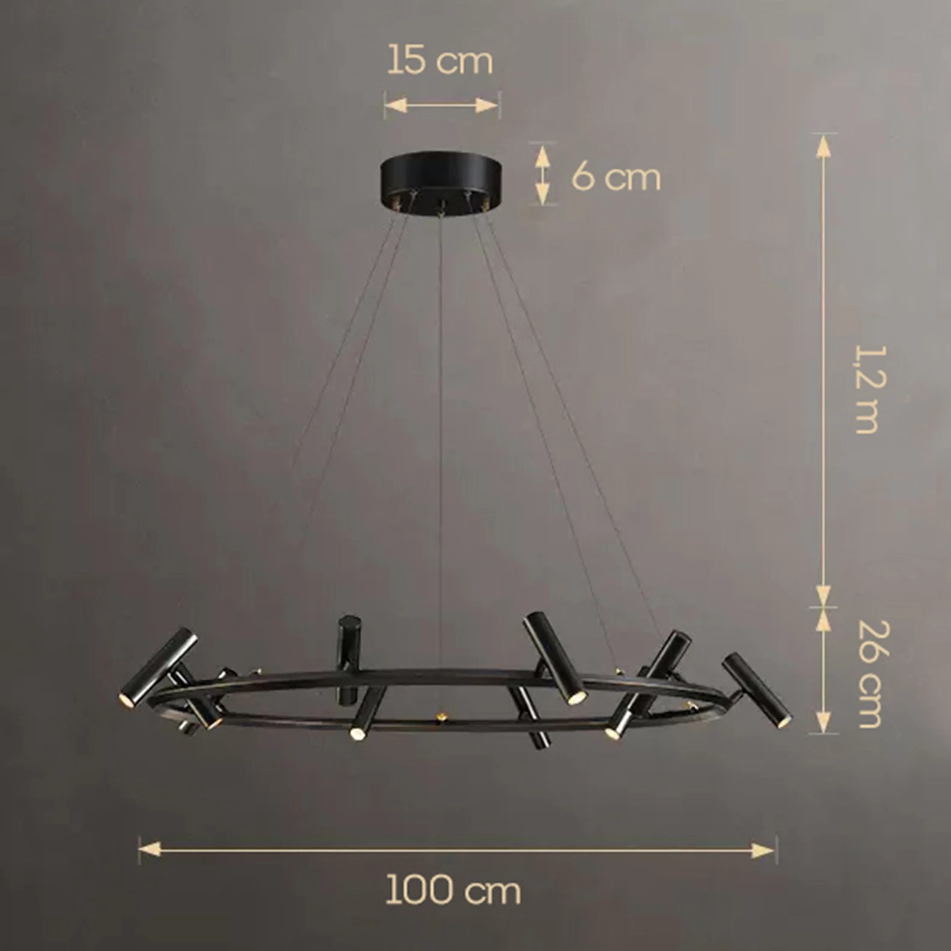 Представляем вашему вниманию нашу новинку - люстру с цилиндрическими плафонами, которая станет идеальным выбором для вашего интерьера. Благодаря своему уникальному дизайну, LEEDS Ring не только обеспечивает качественное освещение, но и добавляет нотки изысканности в любой интерьер. Размер потолочного крепления - Ø 15 × 6 см, длина подвеса - 120 см.