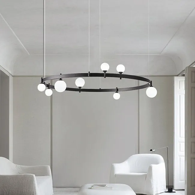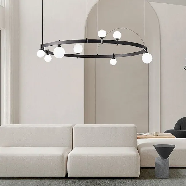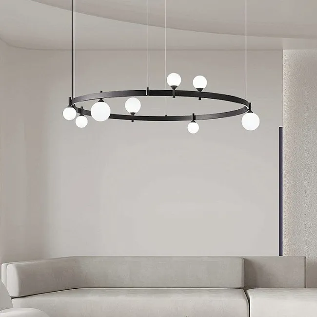 взял люстру в свою холостяцкую берлогу. у меня квартира в стиле лофт, сюда такой светильник прям отлично вошёл, интерьер мой дополнил и свет дал, какой был нужен. здесь всё металлическое, из качественной латуни. моя квартира студия довольно большая, поэтому люстру выбрал с двумя кольцами и с 10 лампочками. плафоны направил как мне нужно было. сборка очень качественная. магазин привёз заказ быстро, брака не было.