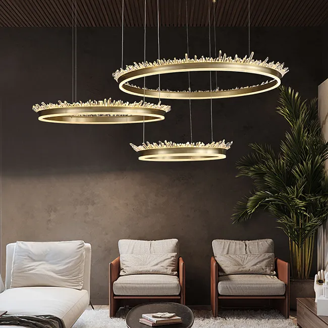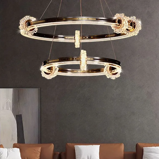 Стиль оформления люстры зачастую становится основным критерием выбора. Кольцевые светильники универсальны и вписываются практически в любой интерьер. Любителям классики подойдут варианты с хрустальными элементами и позолотой. Если вы хотите добавить уюта, то стоит обратить внимание на текстильные абажуры. Для комнат в прованском стиле идеально подойдут модели со струнными подвесами.