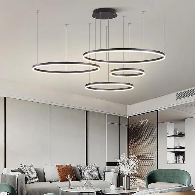 Люстрам в форме кольца необходимо правильно подобранное место в интерьере. Помимо своей основной функции как источника света люстра выполняет важную роль в общей композиции помещения. В данном случае главным нюансом выбора является её форма. Кольцевая люстра создаст атмосферу уюта в комнате и определит общее направление дизайна. Оборудование данного типа представлено в нашем интернет-магазине в широком ассортименте. У нас вы без проблем сможете подобрать наиболее подходящий вариант.