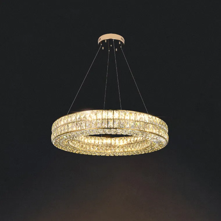 Серия кольцевых светодиодных люстр с хрустальными рассеивателями в форме слитков