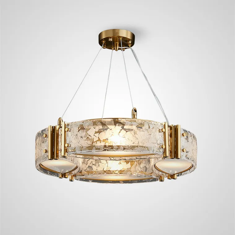 Кольцевая люстра на струнном подвесе с абажуром из округлых стеклянных пластин с эффектом битого стекла
