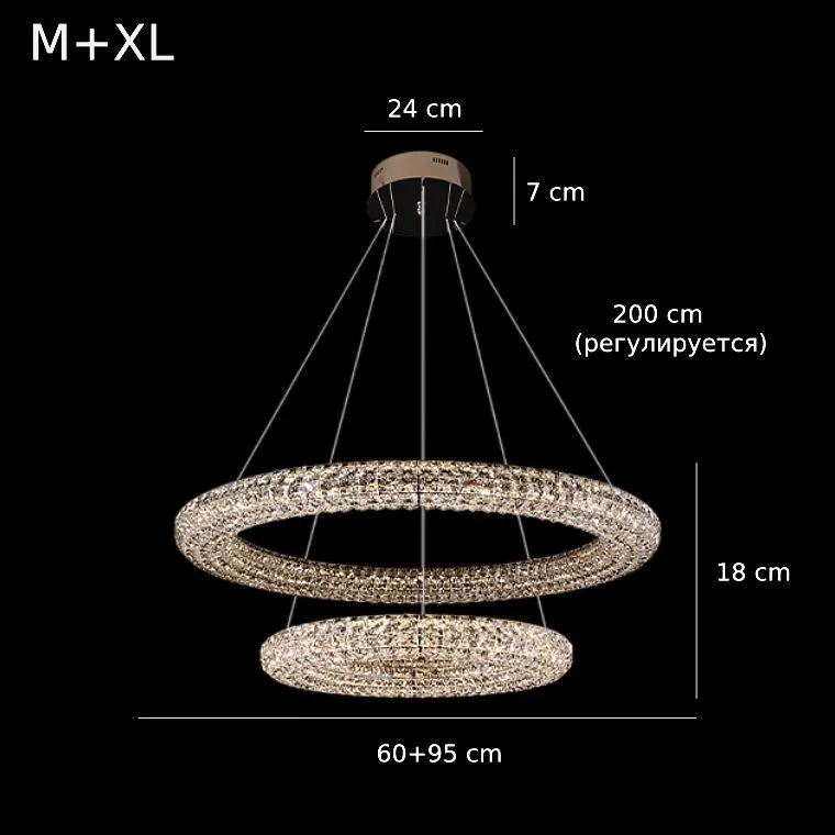 Серия кольцевых светодиодных люстр c хрустальными элементами прямоугольной огранки