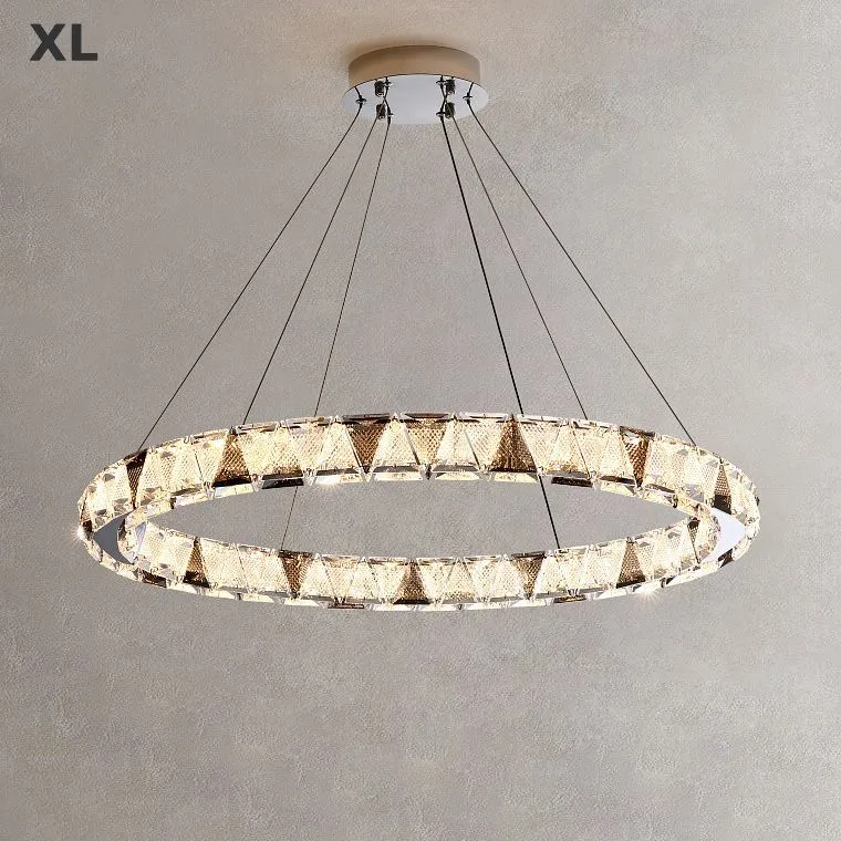 Серия кольцевых светодиодных люстр c рельефными хрустальными рассеивателями треугольной формы