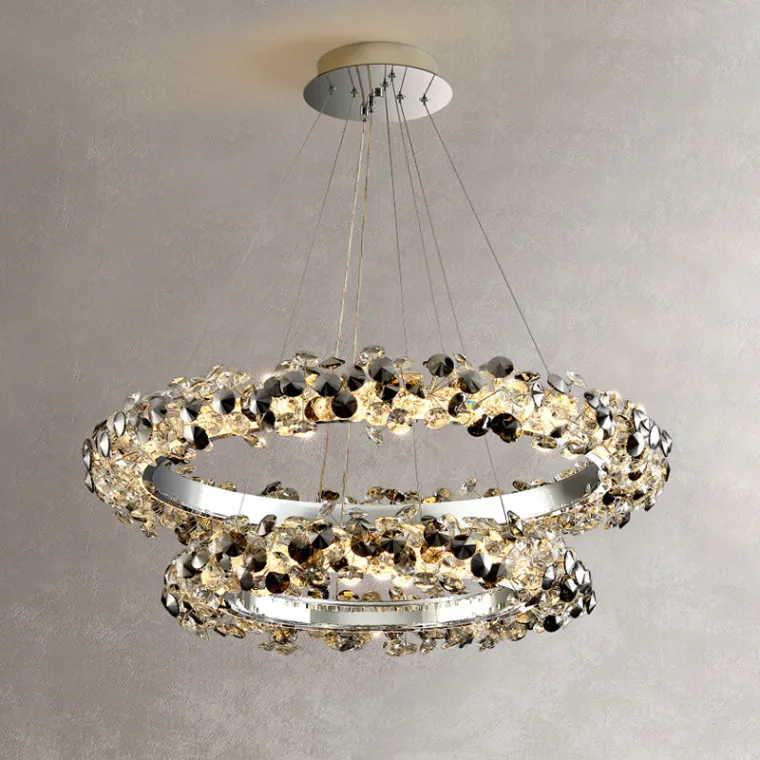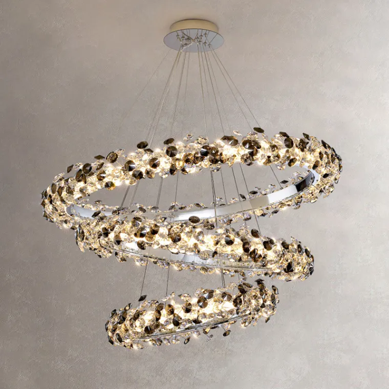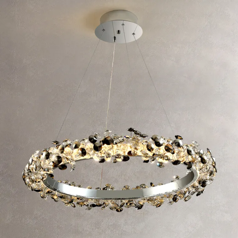 Серия кольцевых светодиодных люстр с декором в виде пучков из хрустальных камней