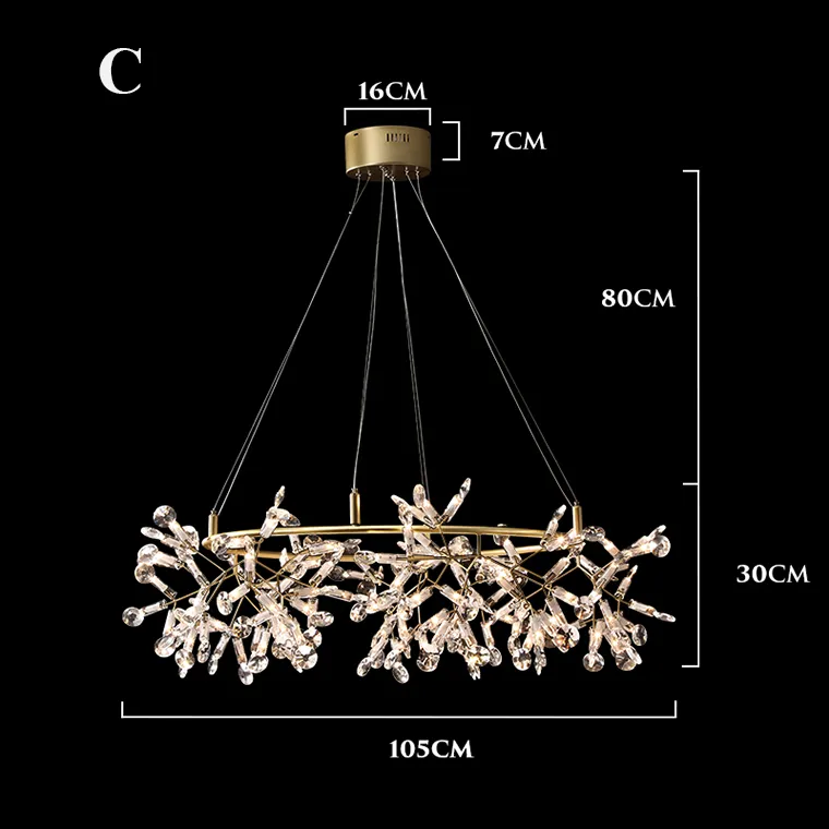 Эти люстры повесили в ресторане, выбирала и покупала я, но директор одобрил тоже. Лампочек много, свет они выдают мягкий, не холодный. В зале комфортно прям. Но отдельного внимания заслуживает дизайн. Замечала не раз, что посетители рассматривают эти люстры, я и сама на них невольно смотрю. Много веточек и сверкающие лепестки. Подвесы длинные, тонкие струнки, их почти не видно. Кажется, что люстры парят над столиками.