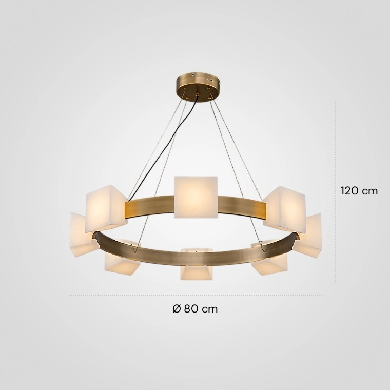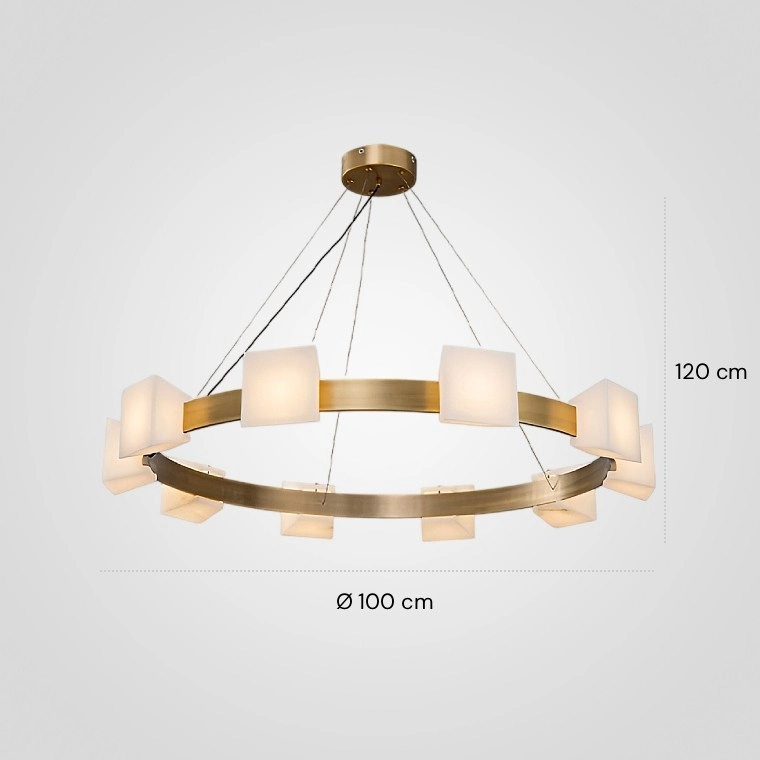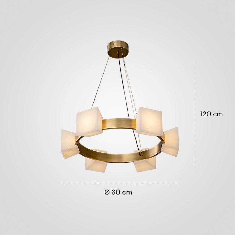Серия кольцевых люстр с мраморными трапецевидными плафонами на металлическом каркасе
