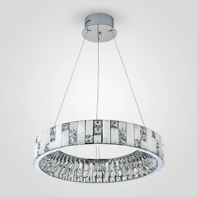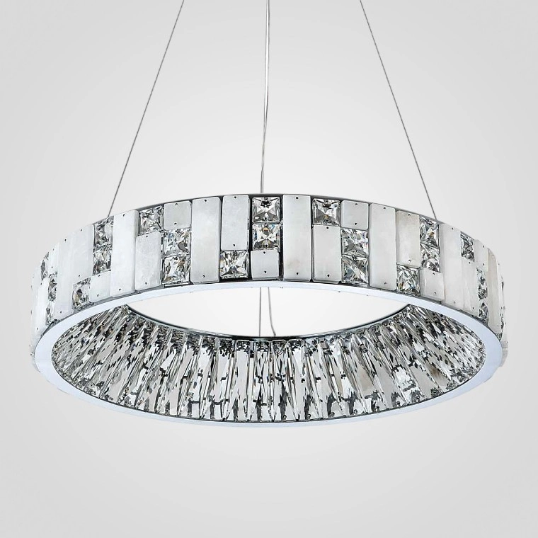 Каркас кольца выполнен в хромированном цвете. Натуральный мрамор, используемый в виде рассеивателей, добавляет изящество и придает освещению утонченность. Мрамор обладает особым шармом и олицетворяет роскошь и изысканность.