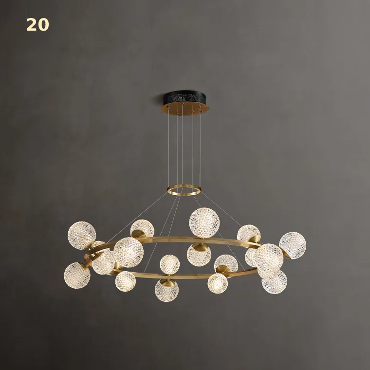 1. Уникальный дизайн: форма плафона шар и изящные латунные элементы делают эту люстру настоящим произведением искусства, которое привлечет внимание и станет центром внимания в вашем интерьере.