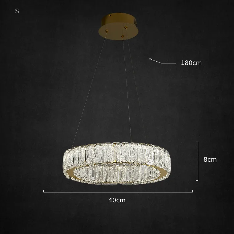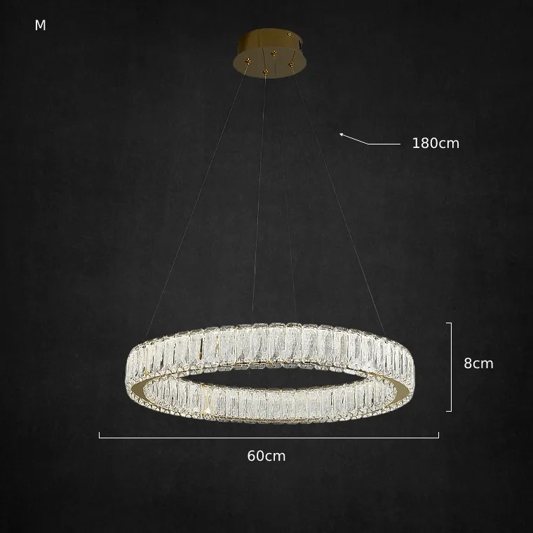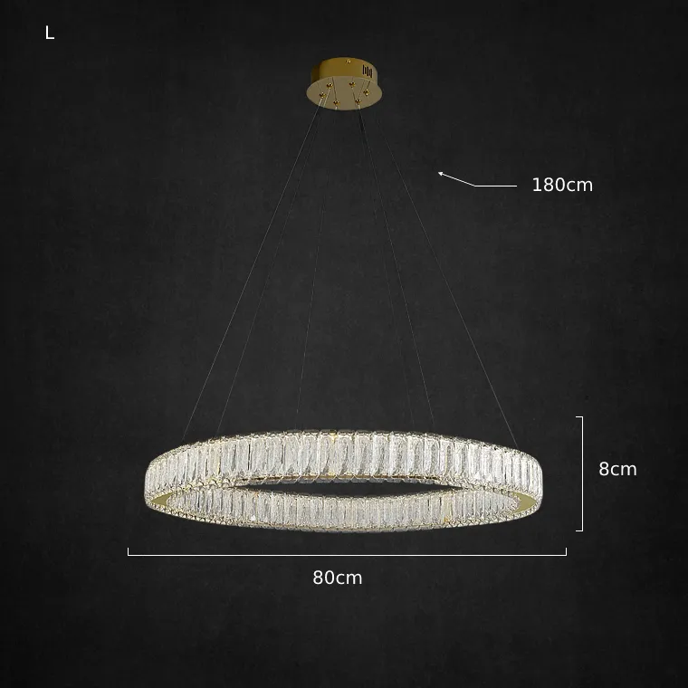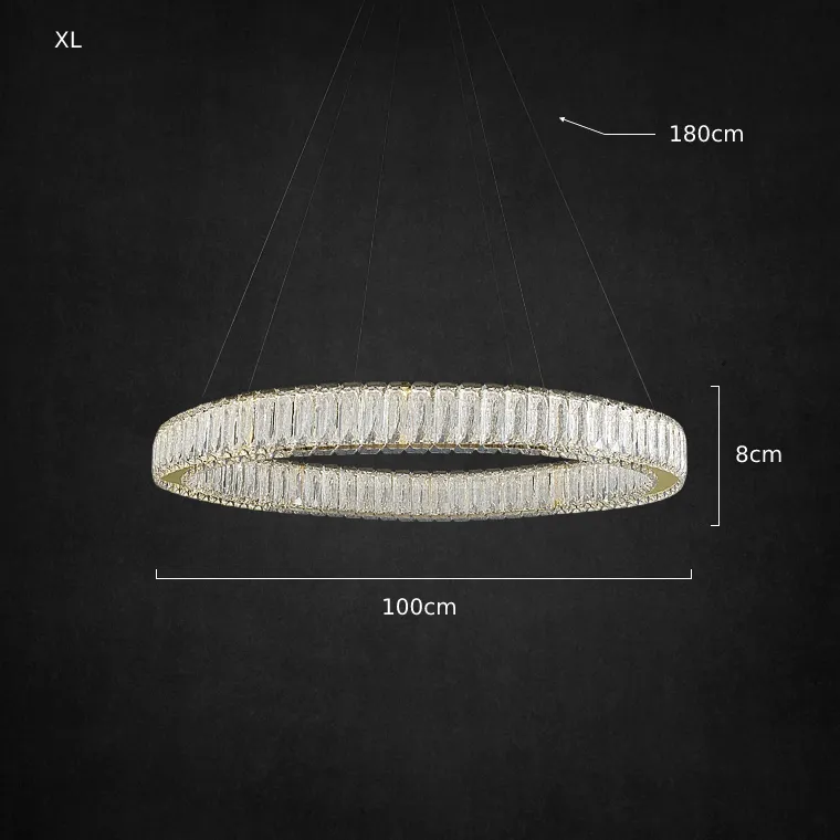 Серия кольцевых светодиодных люстр с многогранными хрустальными рассеивателями прямоугольной формы