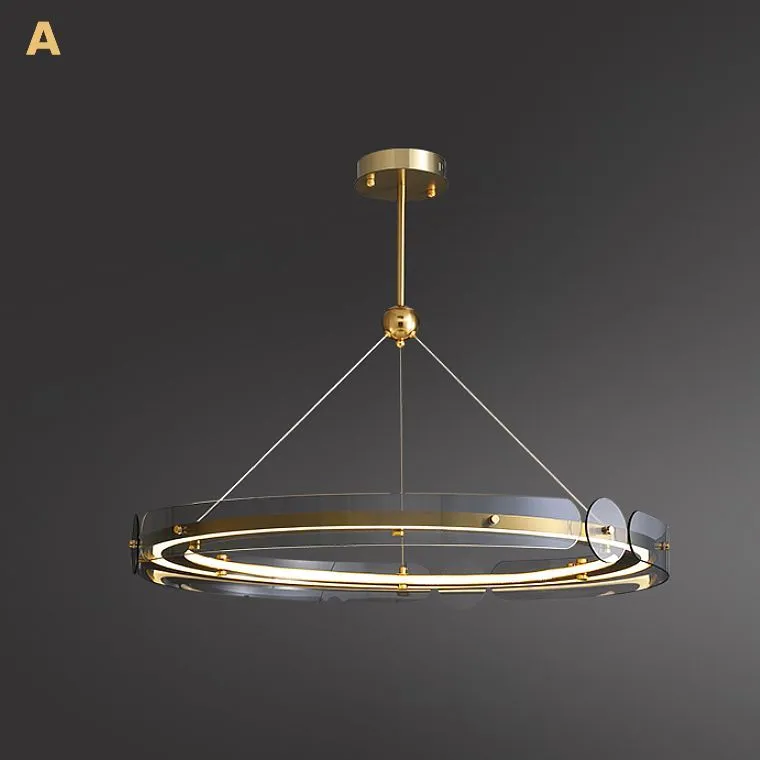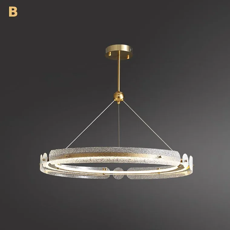 Серия кольцевых светодиодных люстр с вытянутыми округлыми рассеивателями из гладкого и рельефного стекла