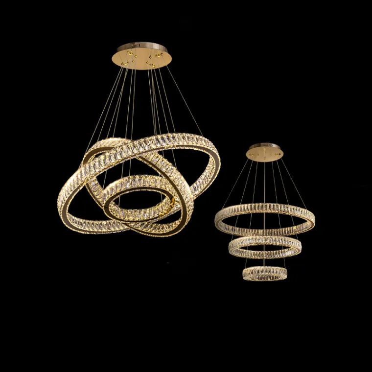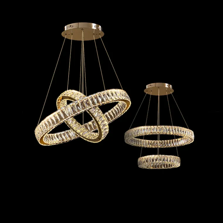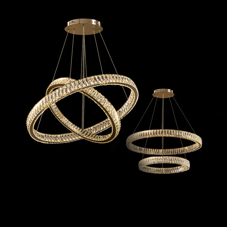 Серия светодиодных люстр в виде комбинации колец разного диаметра с многогранными хрустальными рассеивателями прямоугольной формы