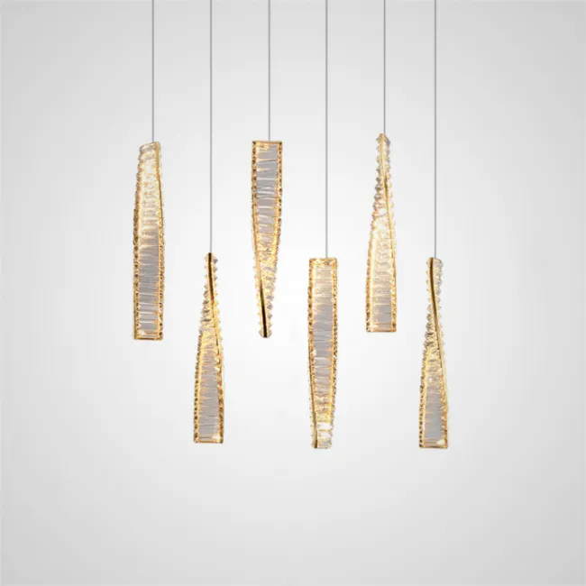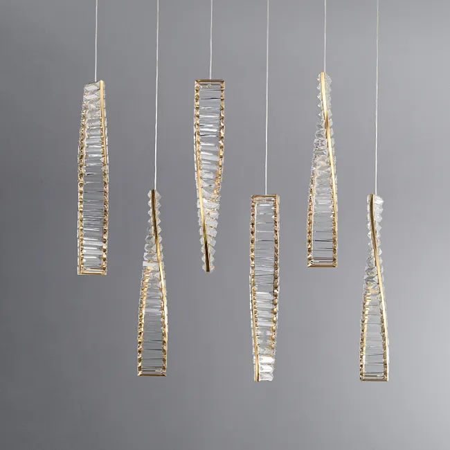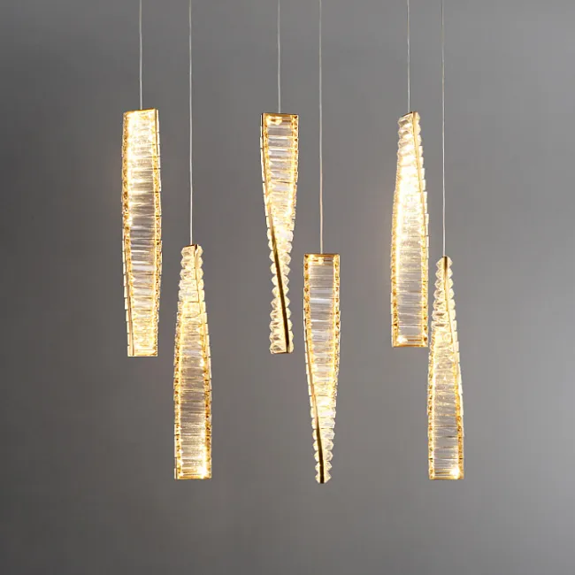 Серия светодиодных люстр в виде комбинации колец разного диаметра с многогранными хрустальными рассеивателями прямоугольной формы