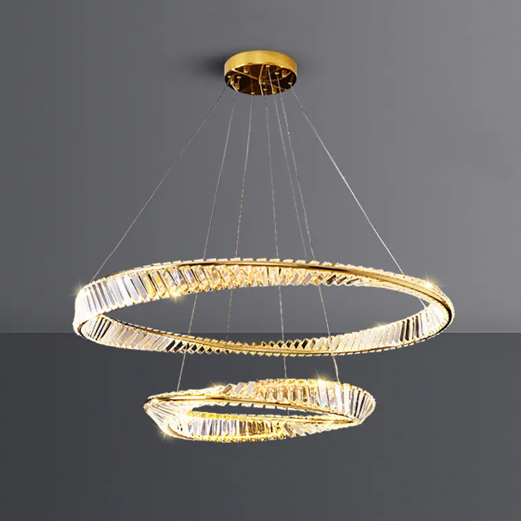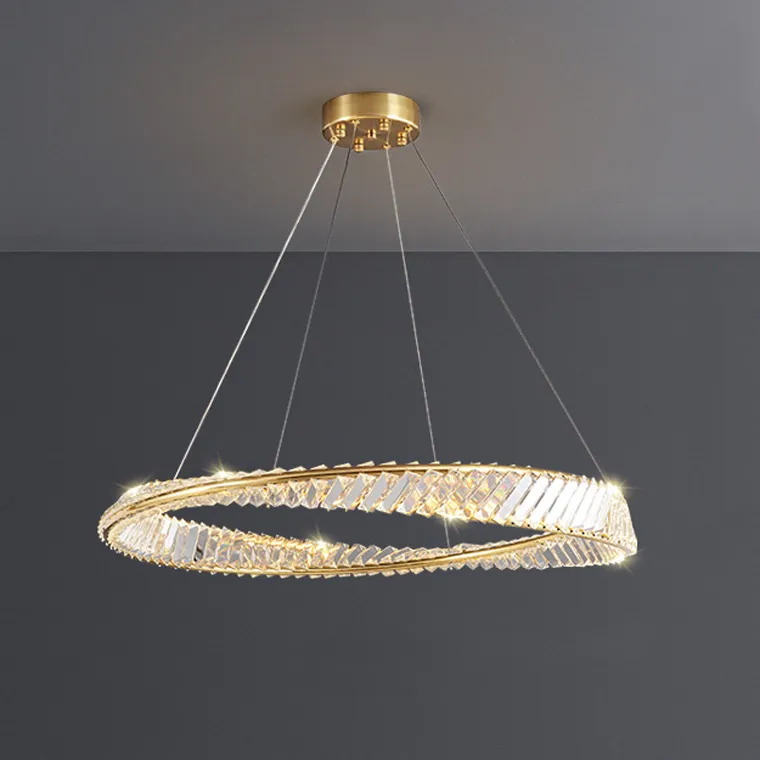 Материалы, использованные в создании этой люстры, включают в себя металл и хрусталь K9, обеспечивая прочность и блеск конструкции. Светильник работает на светодиодах, оснащенных трехцветным переключением, позволяя создавать различные настроения с помощью изменения цветовой температуры света.
