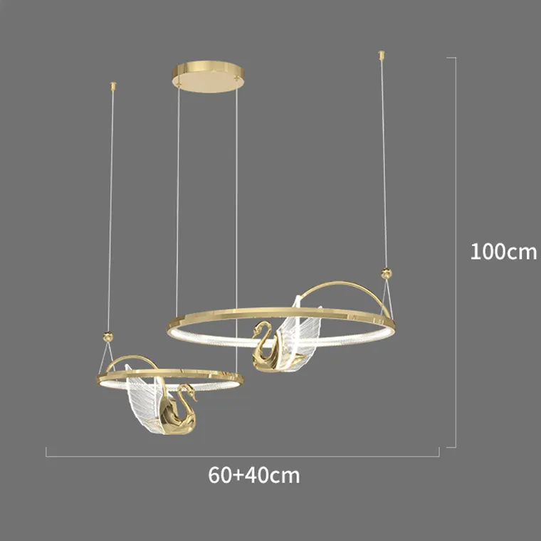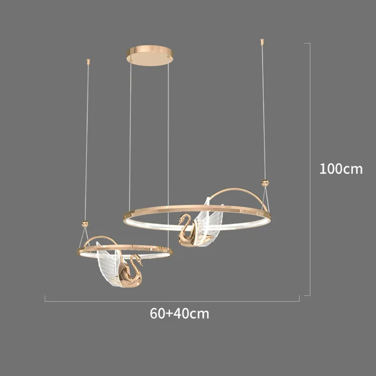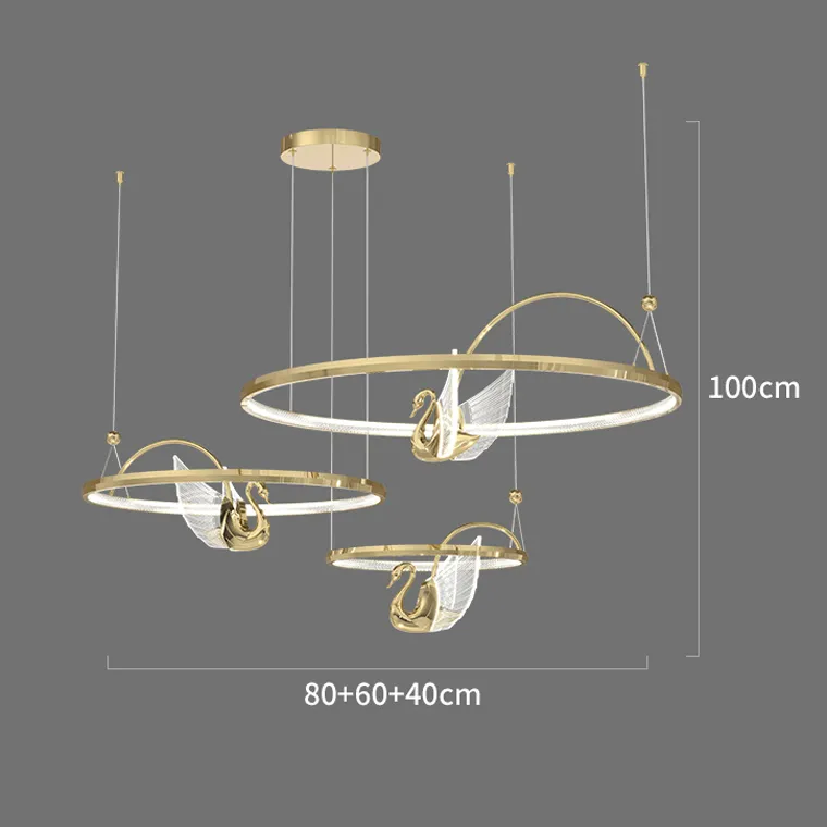 Серия кольцевых светодиодных люстр с плафонами в виде лебедей со светящимися крыльями на дугообразных держателях