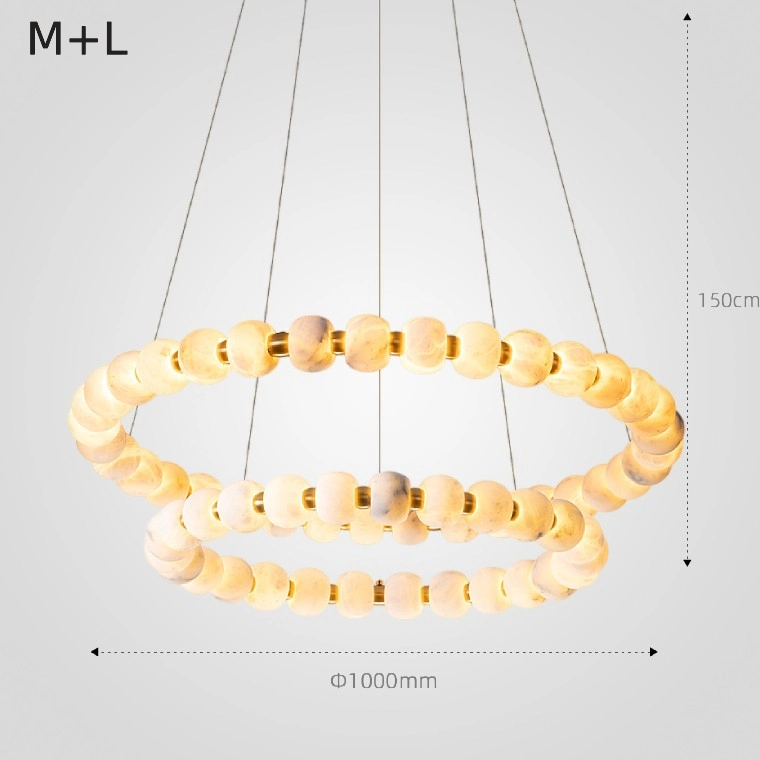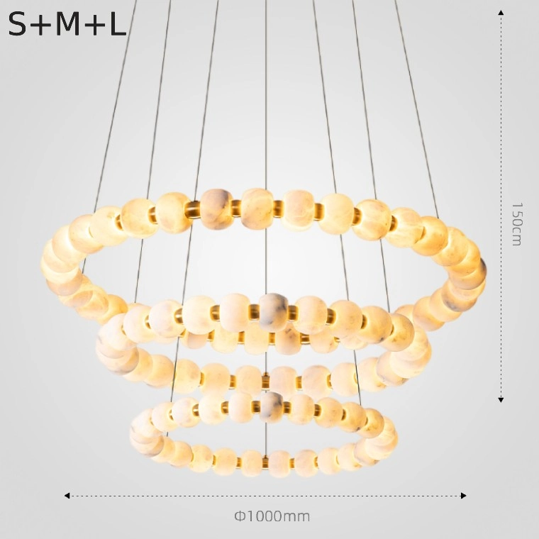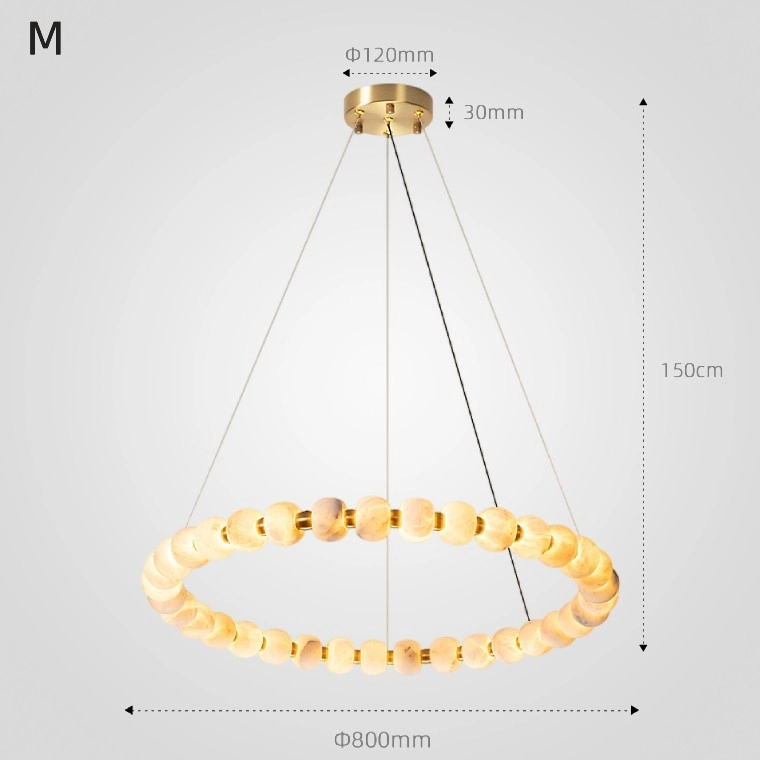 Серия люстр с шарообразными плафонами из мрамора на кольцевом каркасе
