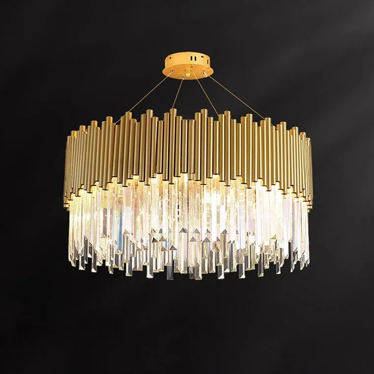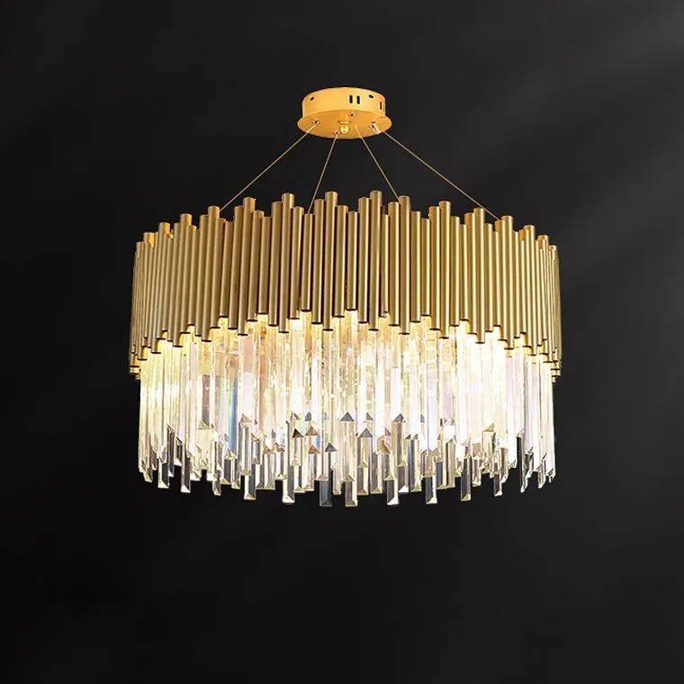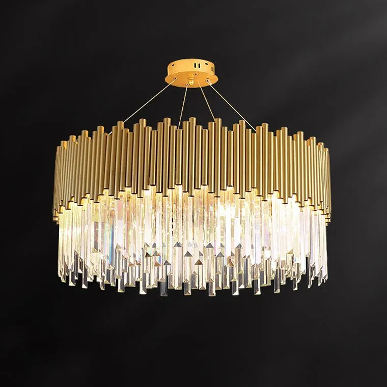 Каркас из золотых трубочек - он словно лучи солнца, проникающие сквозь окна, создает эффект пленительной атмосферы. Многослойные хрустальные подвесные пластины сочетают в себе игру света и отражений, разлетаясь мириадами искр, словно магический горошек, при каждом движении фантастики.