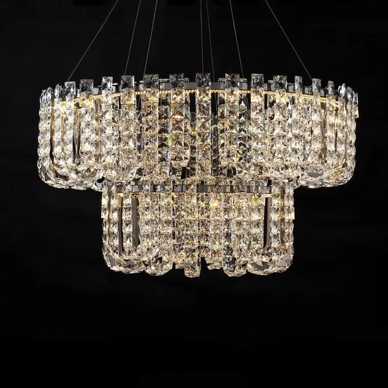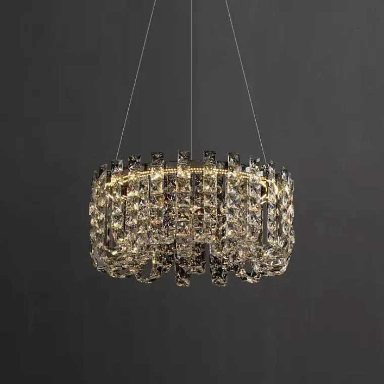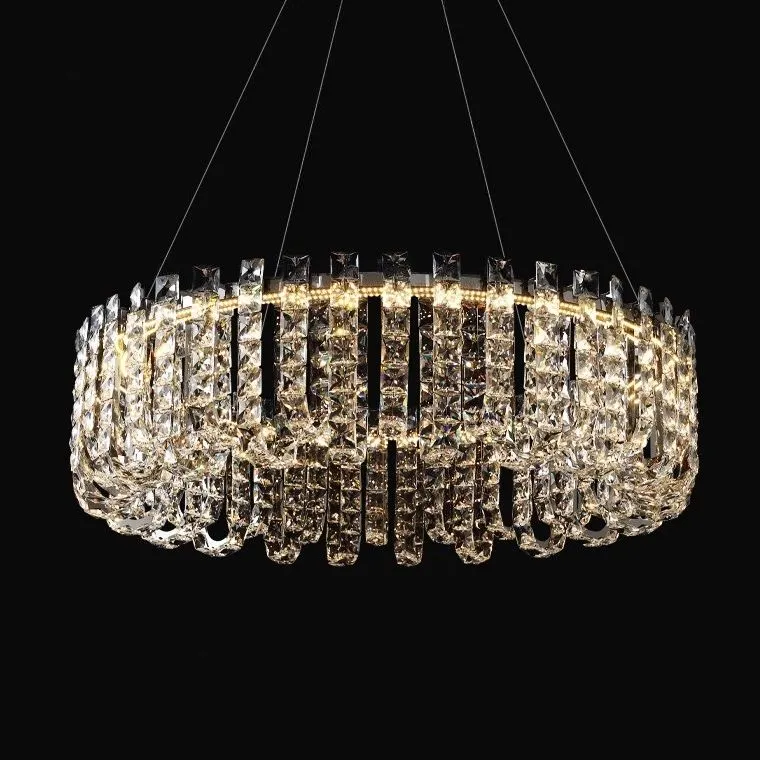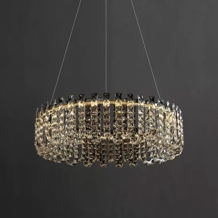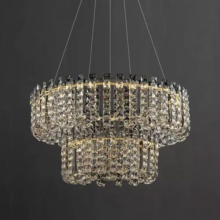 Особенностью люстр CALVIN являются свисающие хрустальные граненые плашки на цепочках. Свет играет на гранях, создавая потрясающий игр света и тени в помещении. Двойной слой хрустальных подвесок придает люстре дополнительную глубину и роскошь. Люстры могут быть выполнены с одним или двойными кольцами, что создает эффект многослойности в просторных комнатах.