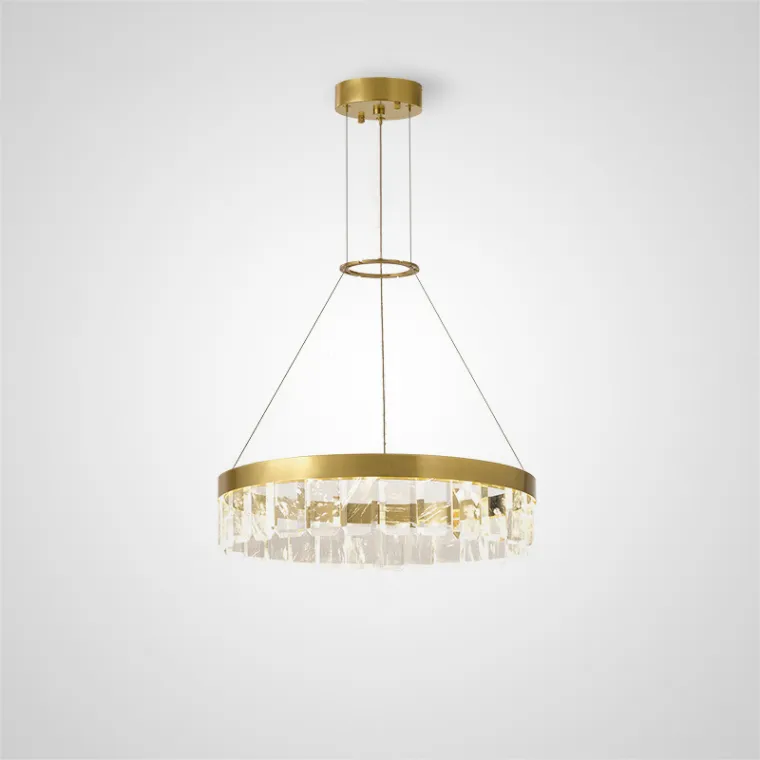 Серия кольцевых светодиодных люстр на струнном подвесе c многогранными хрустальными рассеивателями прямоугольной формы