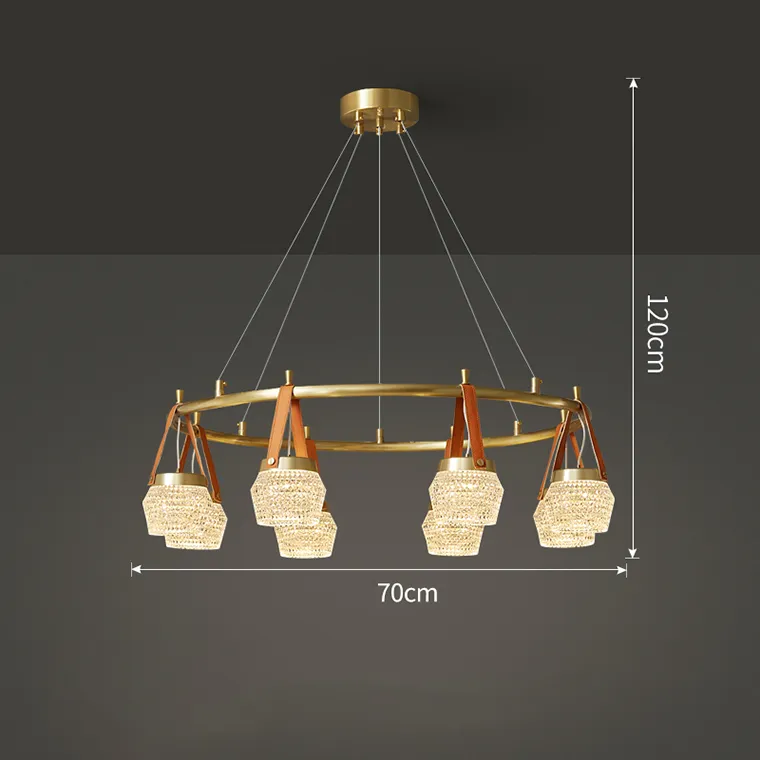 Серия кольцевых светодиодных люстр с многогранными рельефными плафонами на кожаных ремешках