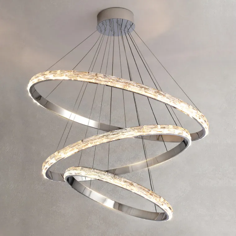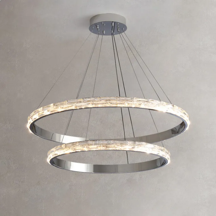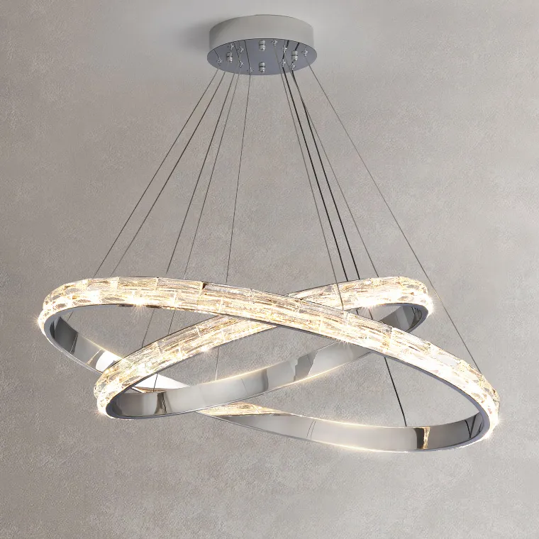 Серия светодиодных люстр в виде комбинации колец разного диаметра c хрустальными рассеивателями прямоугольной формы