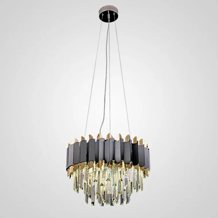 Подвесная люстра с плиссированным абажуром и хрустальными подвесками
