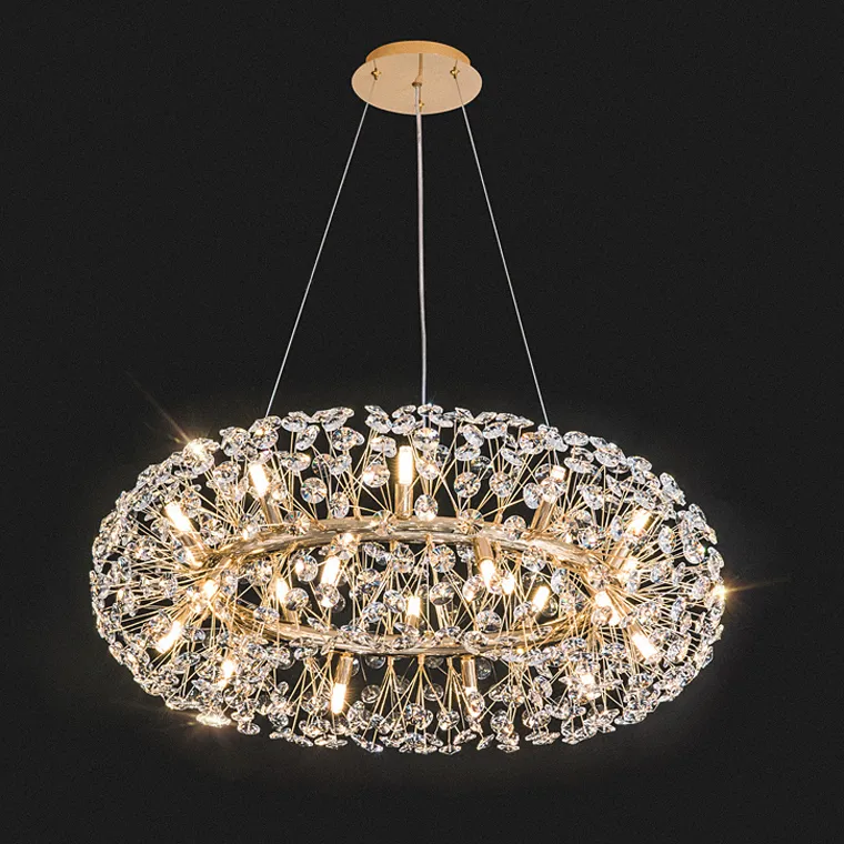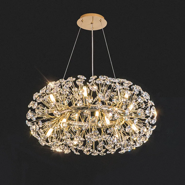 Серия кольцевых светодиодных люстр шаровидной формы, собранной из металлических пучков с хрустальными камнями