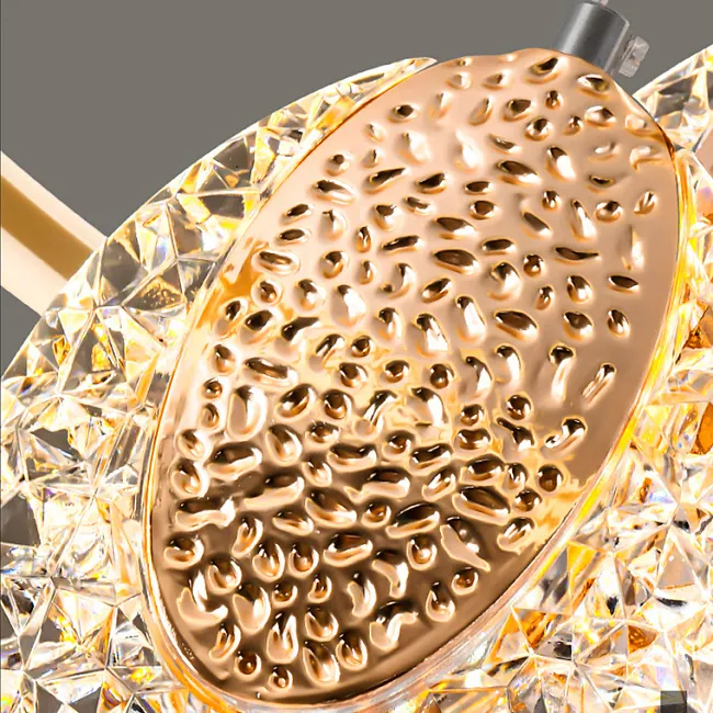 Благодаря современной LED-подсветке свет распределяется мягко и равномерно, не раздражает глаза. Люстра отлично подойдёт для помещений с высокими потолками — гостиной, столовой или просторной спальни. Эстетика современного минимализма сочетается здесь с акцентами арт-деко и флористики.